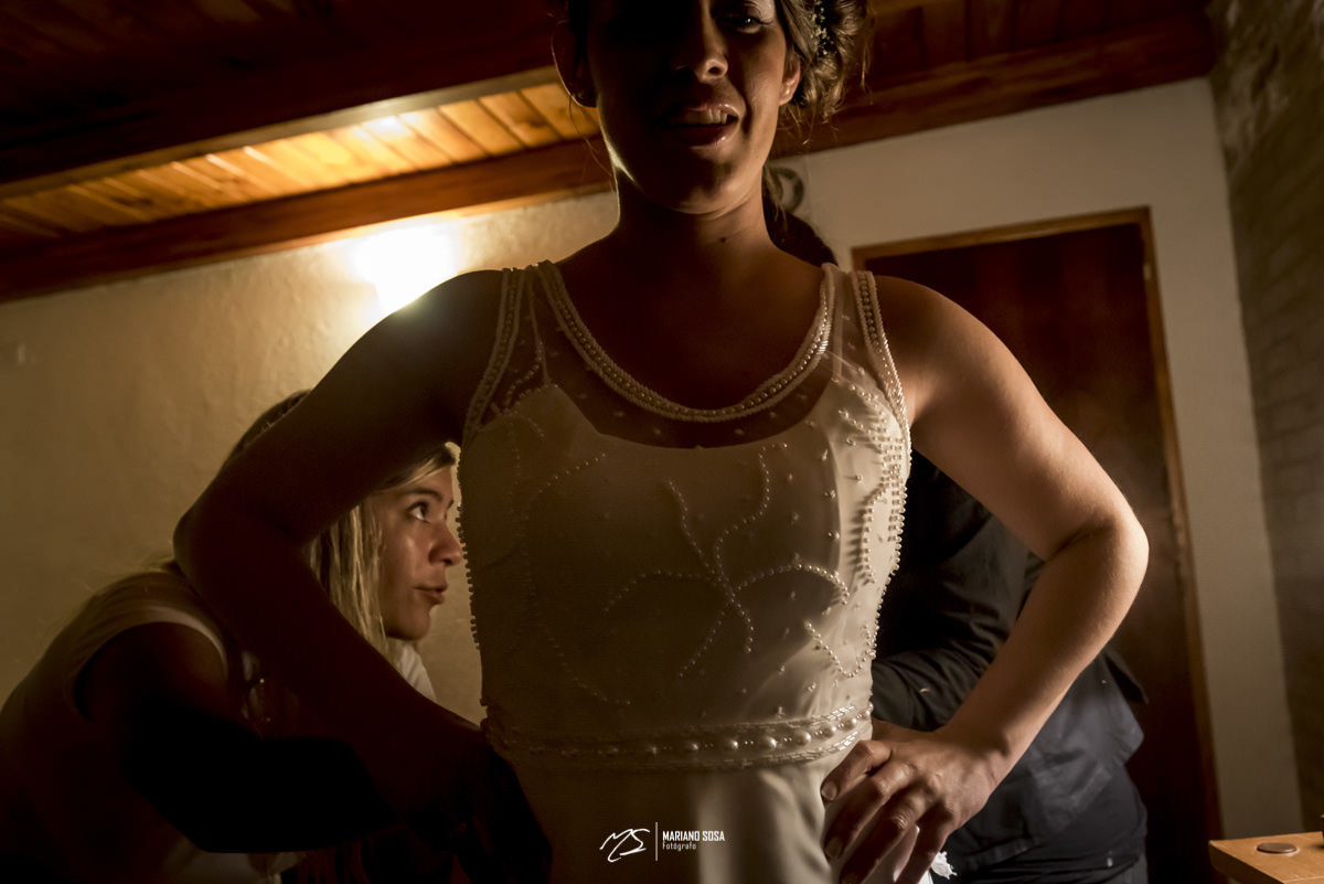 El salón solo estaba a metros de la cabaña, pero de todas maneras los nervios que se empieza a tener cuando va llegando el momento de presentarse ante todos sus invitados, es inevitable y en ese momento es que uno no solo es fotógrafo sino que se transforma en un compañero para bajar esa tensión acompañando, tranquilizando y tratando de que ninguna acción nuestra por lograr una buena imagen, ponga en situación de stress a la novia.